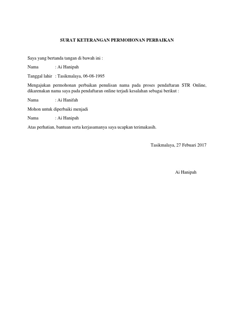 Surat Keterangan Permohonan Perbaikan Pdf